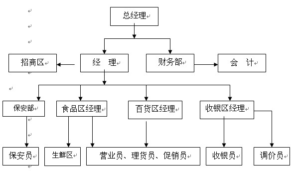 2、店长(经理):以总经理管理下的超市经营管理者,全面负责超市管理,配合总经理提高超市整体经营水准。一般是标准中、大型连锁店聘用。